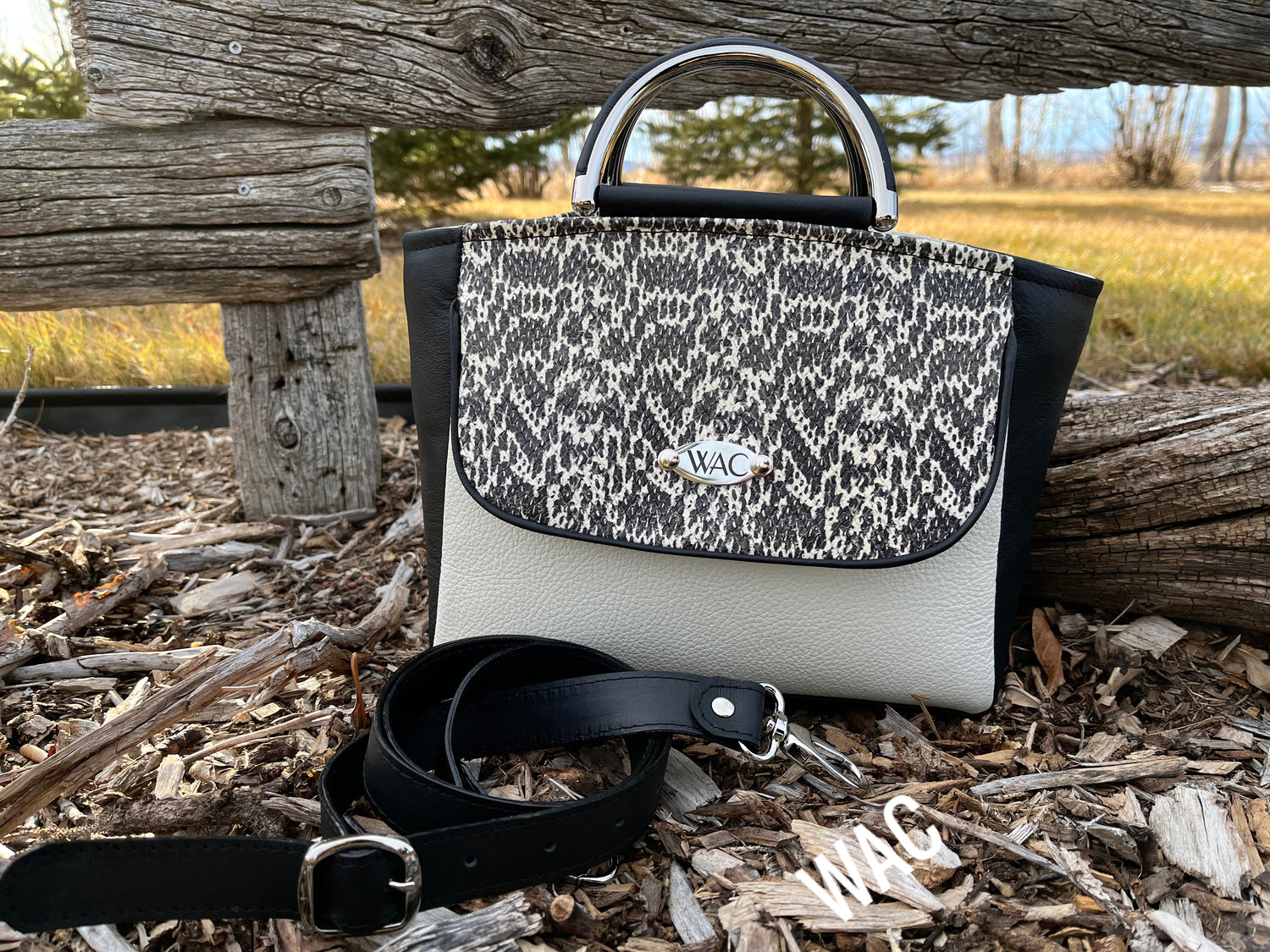 Black Italian Alligator Embossed Leather HandbagRegular price $310.00 CADRegular priceUnit price per